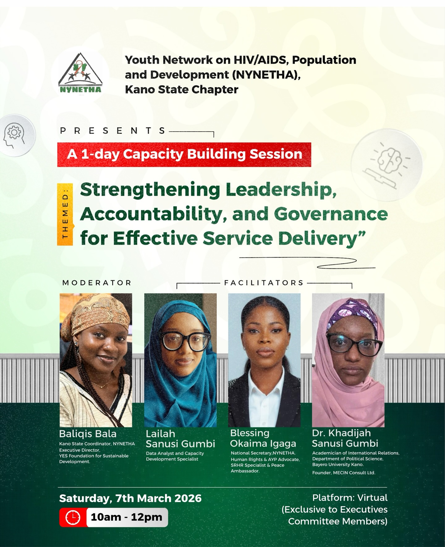 We’re thrilled to announce that we are hosting a 1-day capacity-building session themed “Strengthening Leadership, Accountability, and Governance for Effective Service Delivery," and we are ready! Strong organizations and networks are built on strong leadership. This session brings together exceptional minds to equip our Executive Council with the tools, knowledge, and clarity needed to drive impactful, youth-led advocacy across Kano State and beyond.